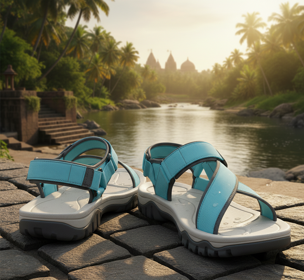 VALGORIT AquaFlow Sports Sandals are designed for adventures and relaxation in the Indian climate. Featuring a quick-drying synthetic strap upper and a contoured footbed for exceptional comfort. The robust rubber outsole provides reliable traction on wet and dry surfaces, making them ideal for beach trips, riverside activities, or everyday casual wear. Easy to wear and maintain. Made for Indian conditions.